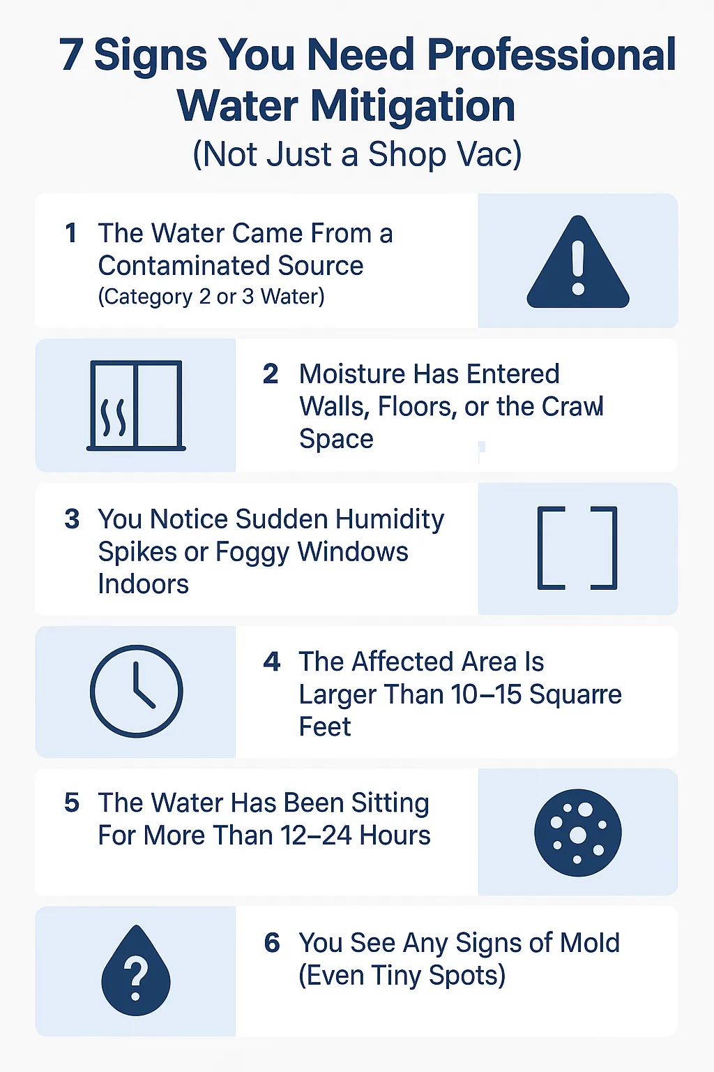 7 Signs You Need Professional Water Mitigation (Not Just a Shop Vac)