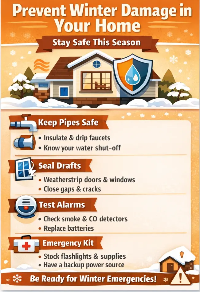 Focus on preventative maintenance: inspect the roof and gutters, improve insulation, seal drafts, insulate exposed pipes, service your HVAC system and test safety equipment. These steps keep your home resilient during occasional cold snaps.